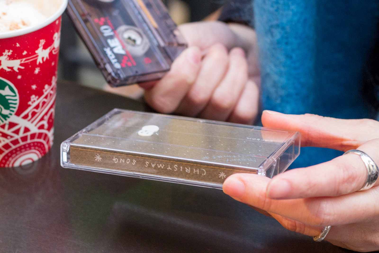 私は雑貨店「carbon」を1999年にOPENして、心にグッとくる贈り物をセレクトするつもりでお店を始めました。1周年のときに感謝のキモチを込めてカセットテープを作りました。ジョン・レノン「Happy Christmas War Is Over」、10分テープを探し出して。聴く機械がなくてもココに(カセットテープ)音楽があるって重みだけでイイ!って思いました。もちろんラベルもお手製デス。