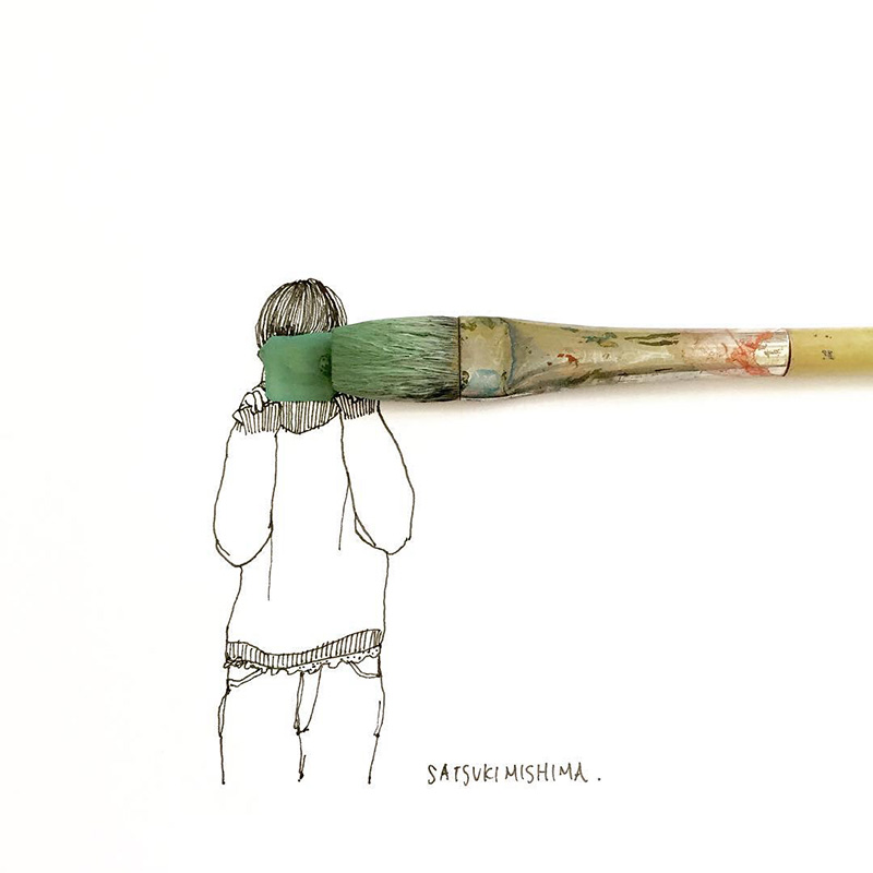 現役美大生でありながら、プロとしてCDジャケットや雑誌の挿画のデザインなどをこなす話題のアーティスト、三嶋さつきさん。Instagramで1万人以上のフォロワーを集めるなど、インターネットでもその評価は着実に広まっています。平日は学校、週末は自宅でデザインの仕事をしながら、デザインとは何か?という根源的なテーマに向き合っています。
