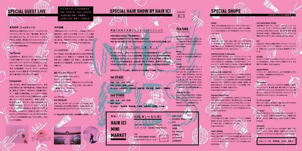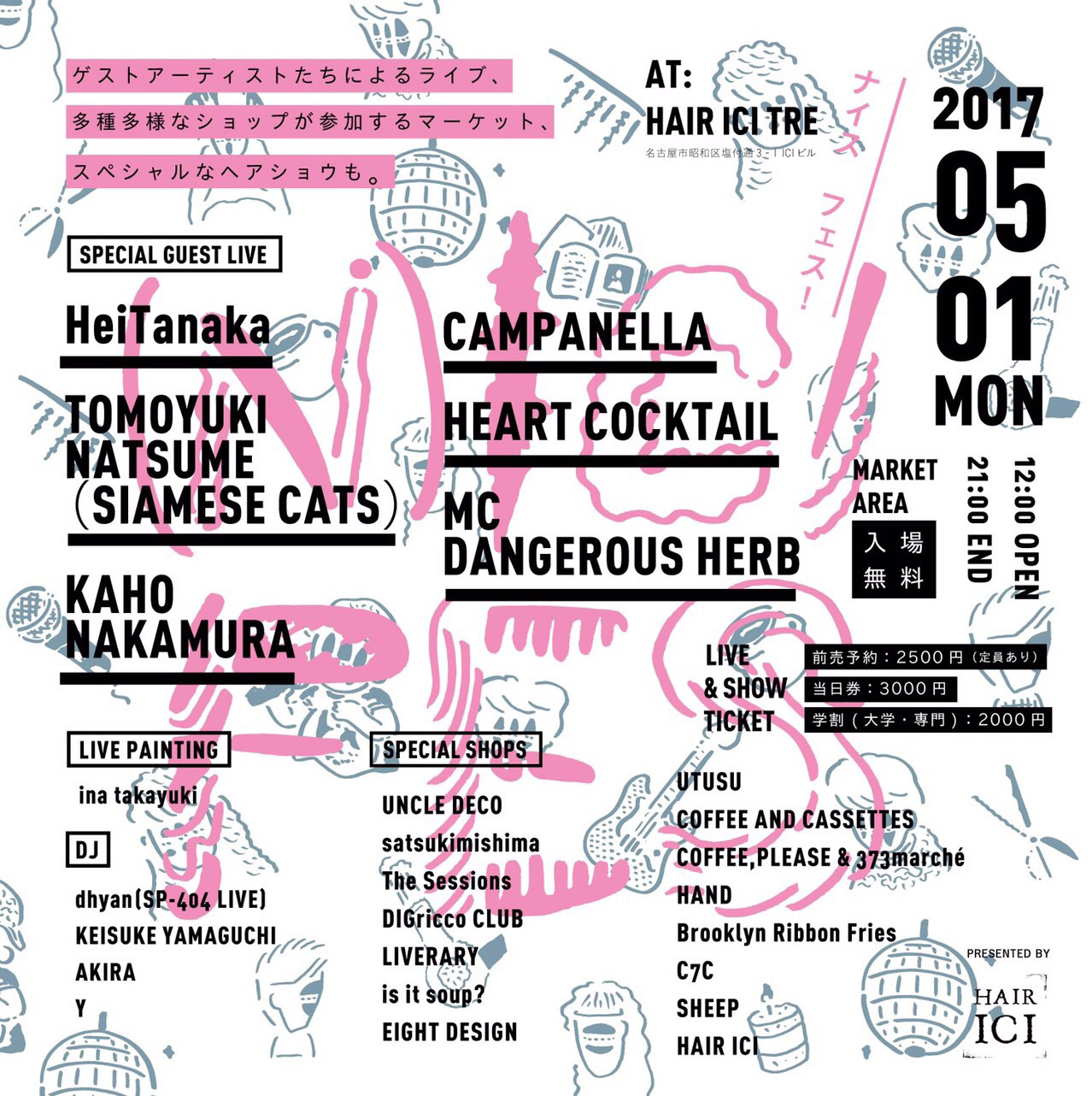 名古屋市内を中心にヘアサロンを展開するHAIR ICIがゴールデンウィークのど真ん中にフェスを開催。音楽、マーケット、ヘアーショウと、美容師主宰のイベントならではの企画が盛りだくさん。三嶋さんは似顔絵屋さんで参加予定です!