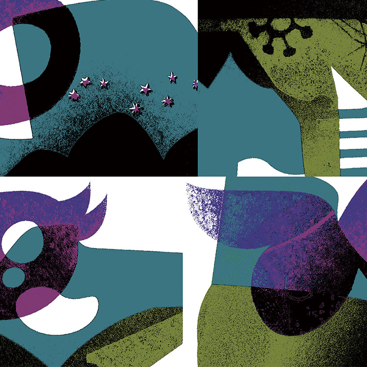 簡単なシルクスクリーンプリントの場合、アトリエで手刷りで行うことが多いのですが、今回は代官山coccaさんに提携いただくことで、大きな版による高度な技術を要するプリントが可能になりました。図案作家にとって、細やかな文脈を正確にくみとって布に表してくれる職人さんの存在はとても有難く、そういった優れた染工事、そして職人さん達との共同作業は、テキスタイル制作の醍醐味といえます。