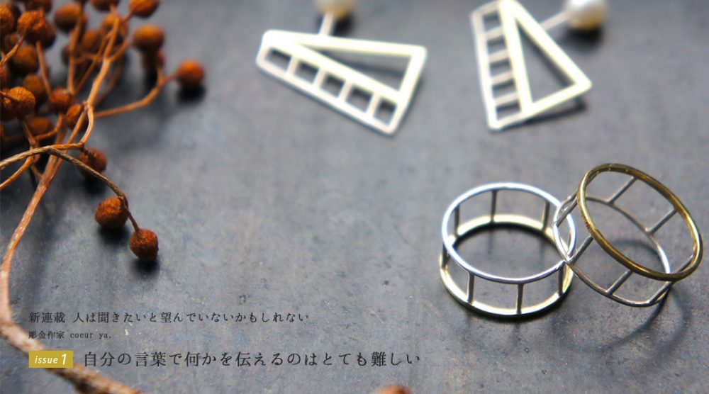 幾何学模様の詩的なアクセサリーが人気の彫金作家、coeur ya.さん。彫金に込める想いをここでは言葉に置き換えて、coeur ya.のアクセサリーのように繊細で思わず惹き込まれる制作秘話をお届けします。