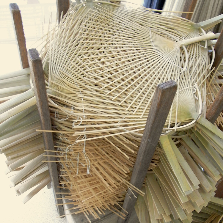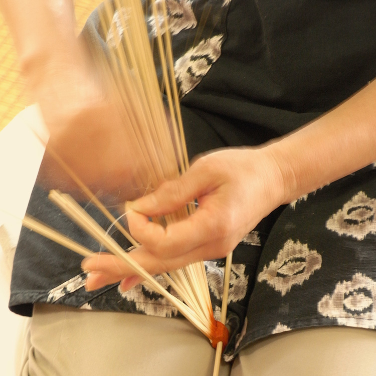 うちわの骨、ひとつひとつ丁寧に竹で編まれている