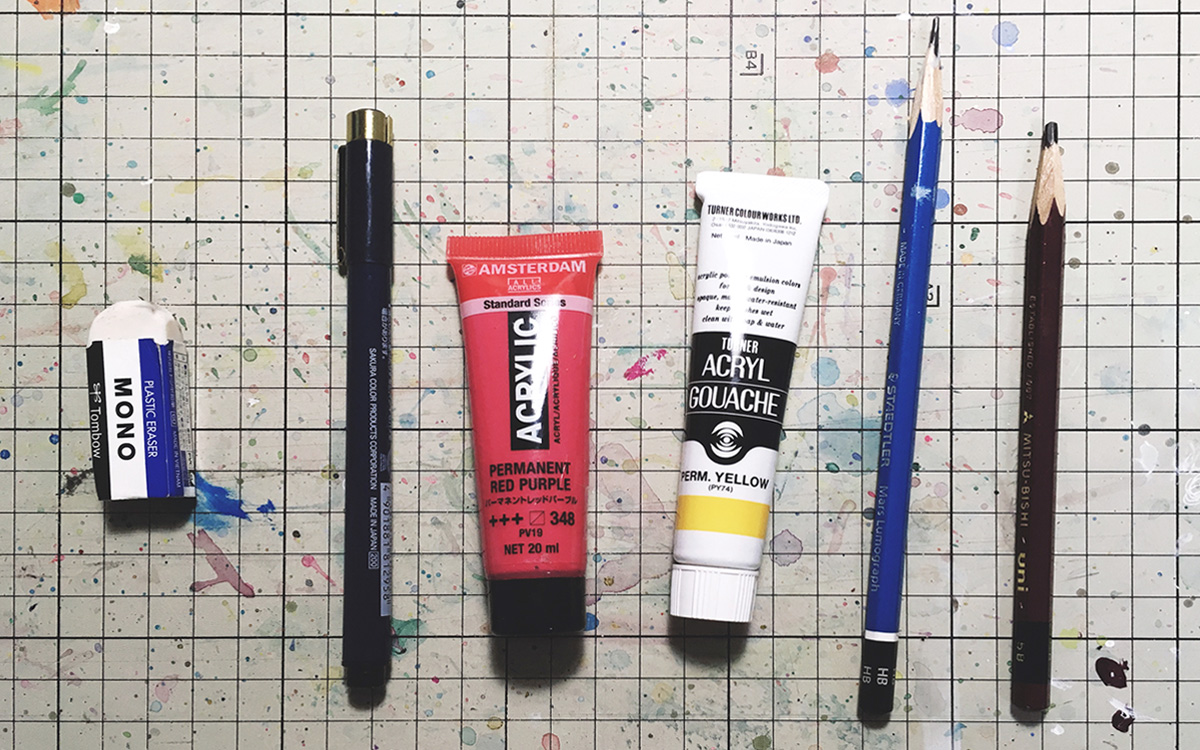 現役美大生でありながら、プロとしてCDジャケットや雑誌の挿画のデザインなどをこなす話題のアーティスト、三嶋さつきさん。Instagramで1万人以上のフォロワーを集めるなど、インターネットでもその評価は着実に広まっています。平日は学校、週末は自宅でデザインの仕事をしながら、デザインとは何か?という根源的なテーマに向き合っています。