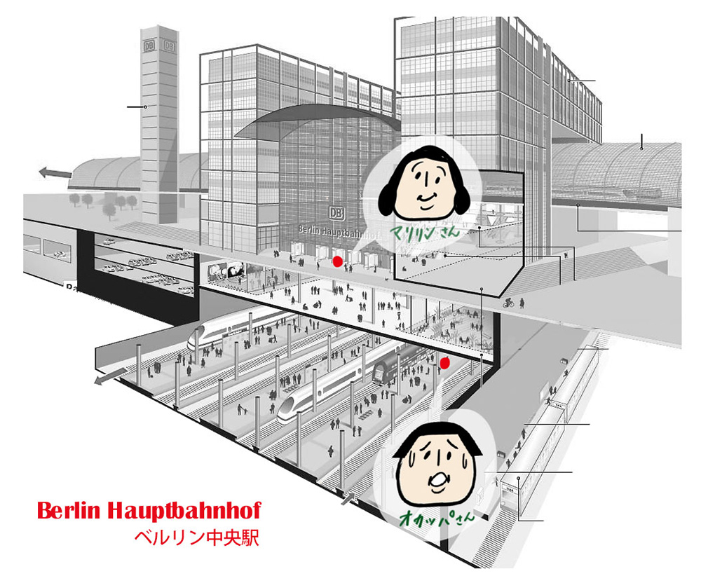ベルリン観光ガイドの依頼を受けたオカッパさんとおヒゲさん。日本からのお客さまをお迎えするために待ち合わせのベルリン中央駅に向かったものの、約束の場所には日本人らしき人の姿は見あたらず…。
