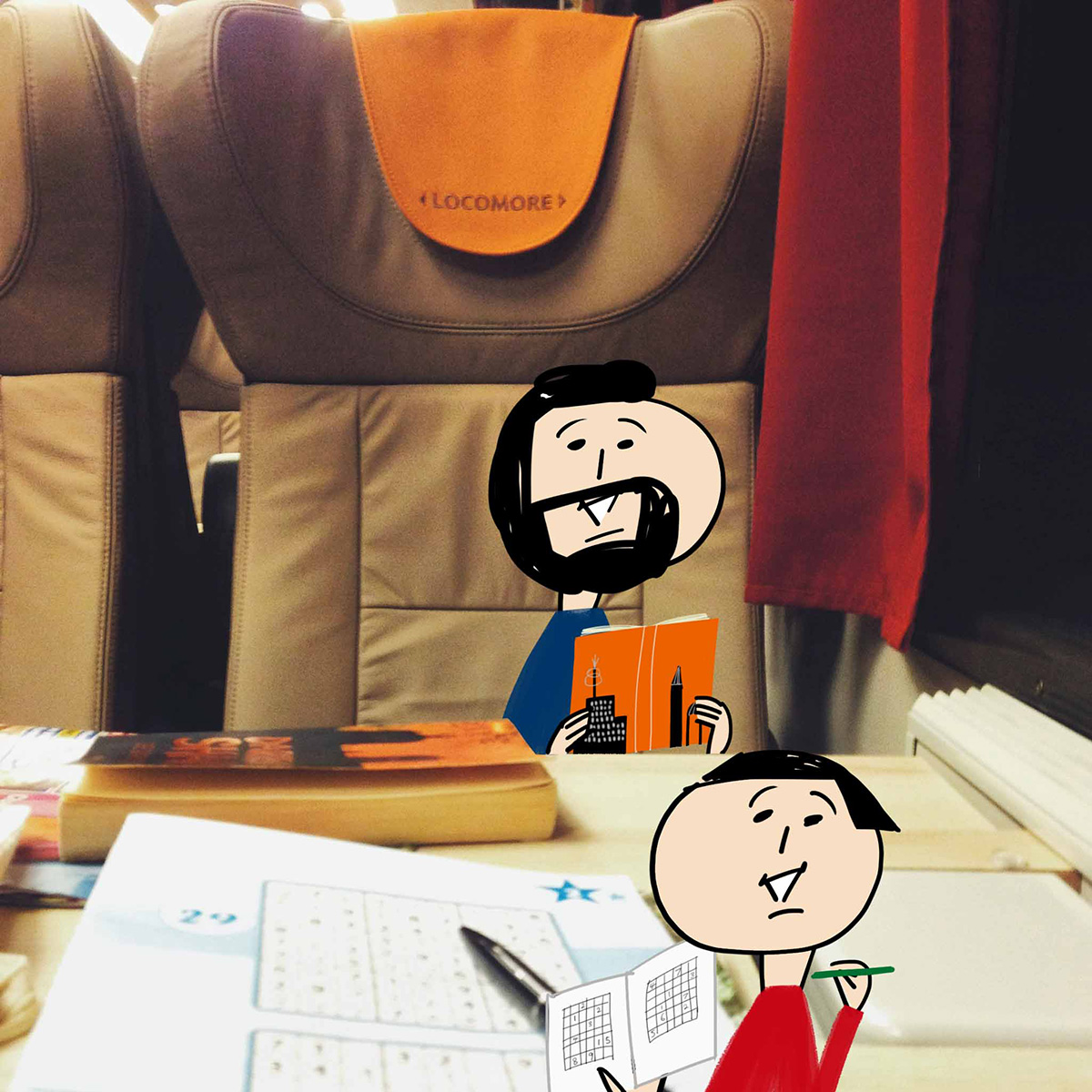 午後3時頃ベルリン中央駅を出発、そこから約5時間乗ったままなので、途中お腹が空くだろうとおヒゲさんがいつものドイツ流(おヒゲ流?)お弁当を準備してくれました。そんなスペシャルなお弁当とデザートのリンゴも楽しみ、おヒゲさんは読書、オカッパさんは数独とそれぞれの時間も楽しみながらの電車時間。