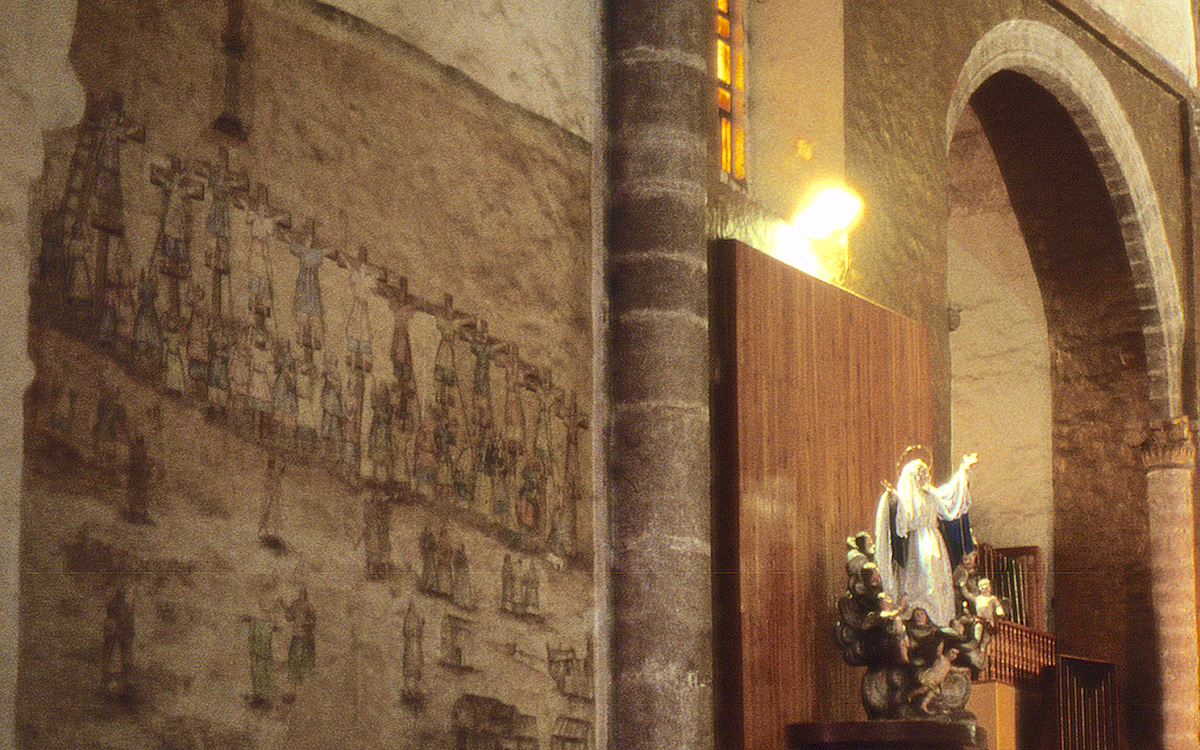 クエルナバカのカテドラル内壁に描かれている日本26聖人殉教壁画